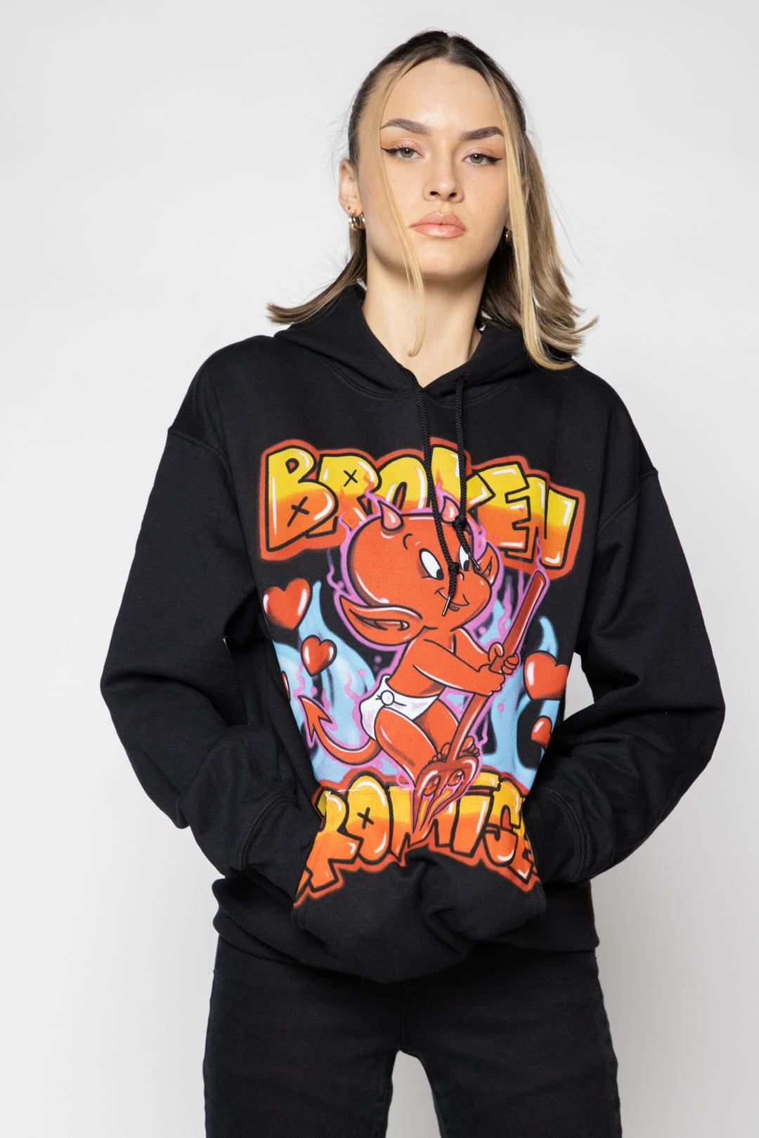 BROKEN PROMISES Airbrush Hoodie Black – BP X Hot Stuff Hoodies