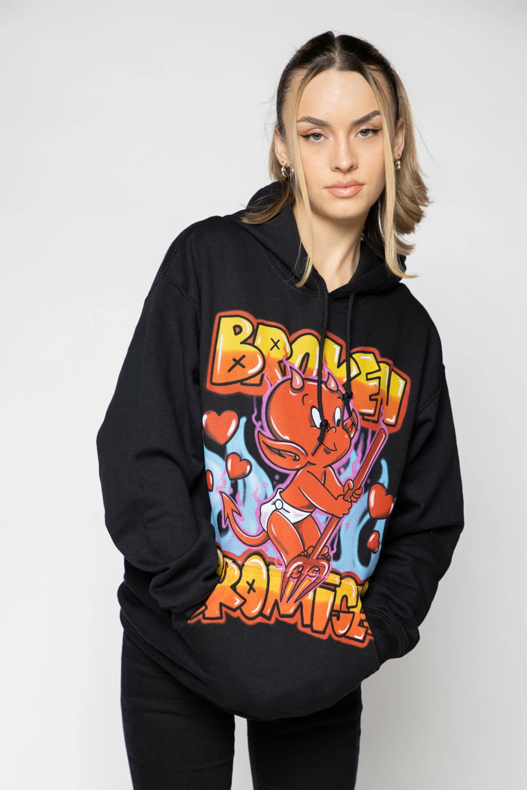 Be the first to review “BROKEN PROMISES Airbrush Hoodie Black – BP X Hot Stuff Hoodies” Cancel reply