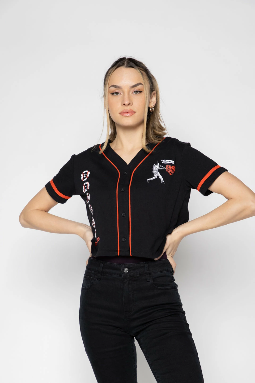 - Custom womens cropped baseball jersey top