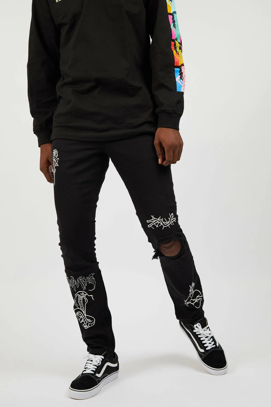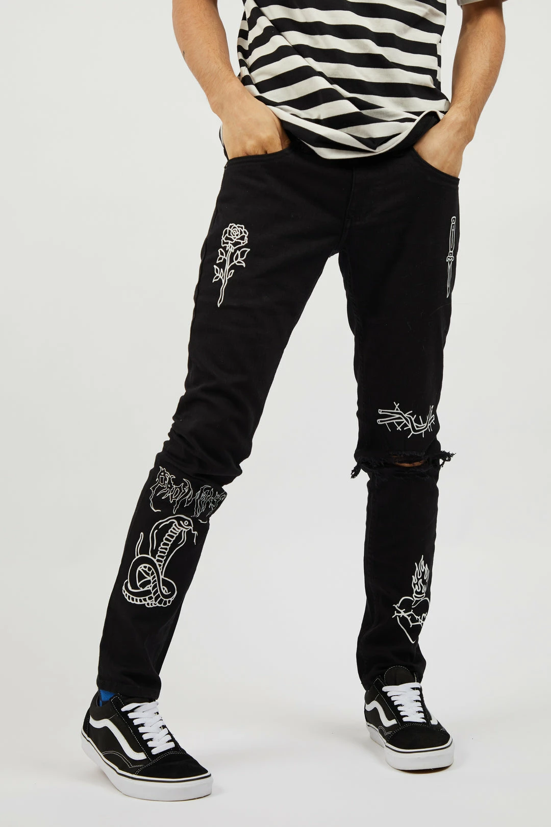- Distressed, knee rips
