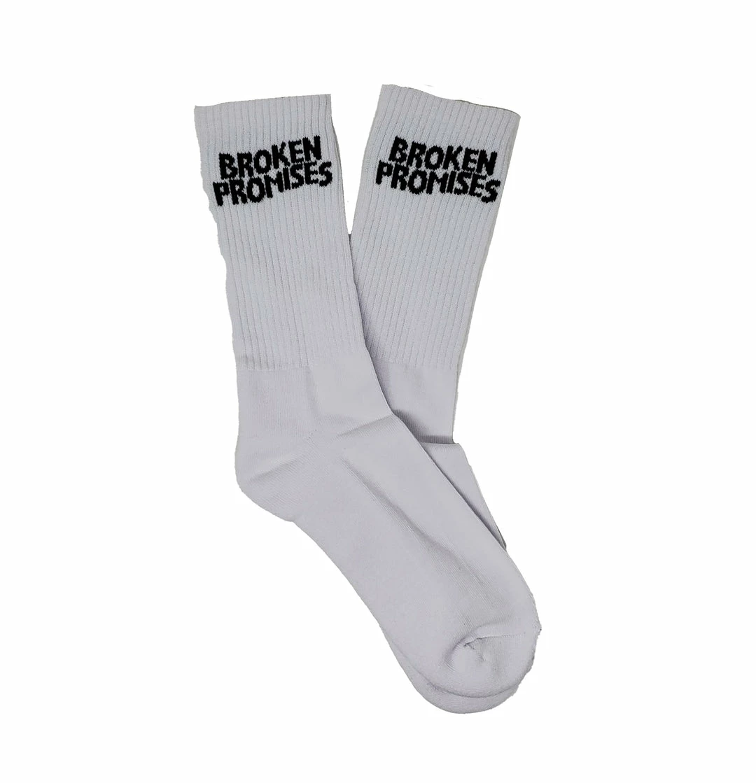 BROKEN PROMISES BP Wave Logo Sock – White Accessories