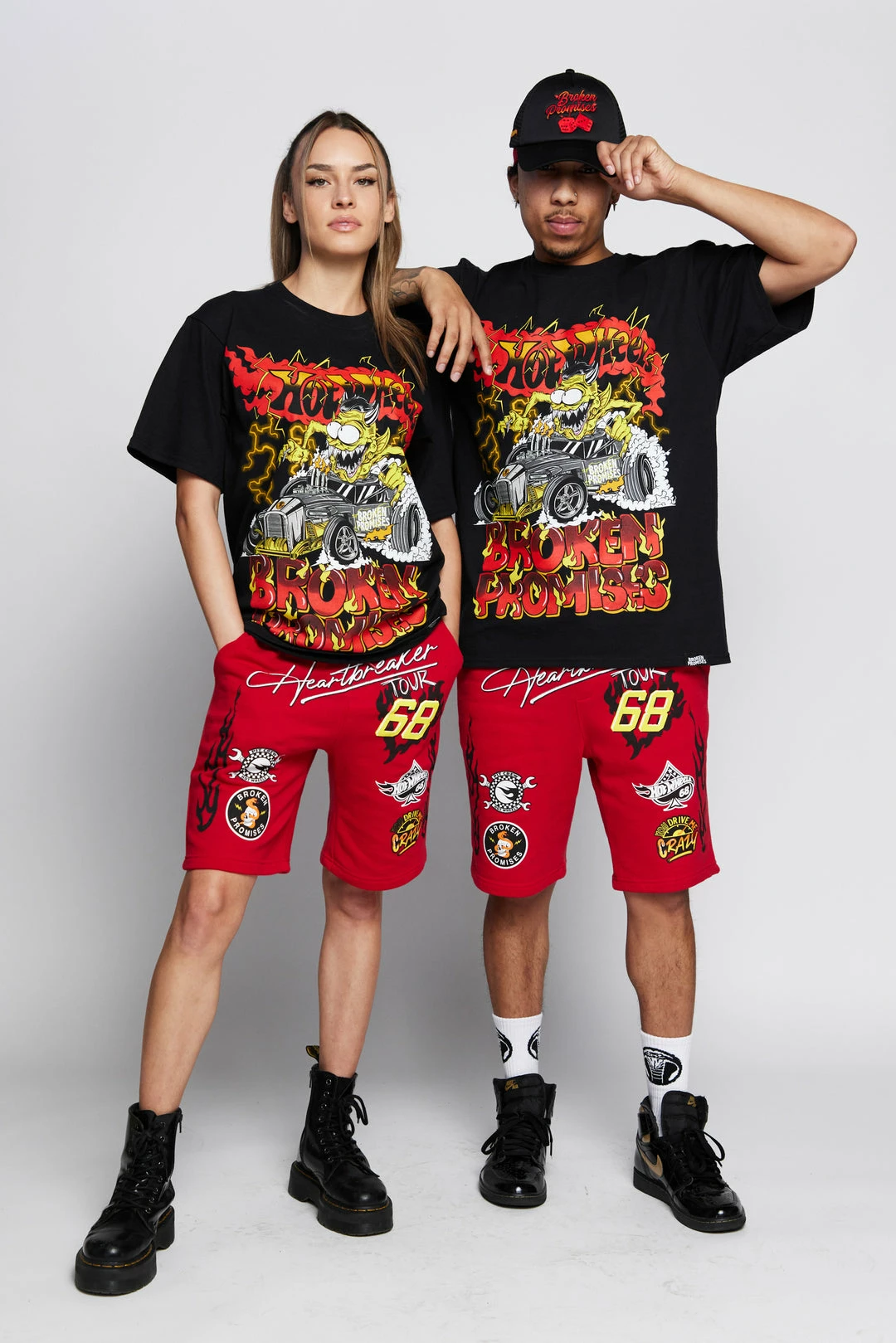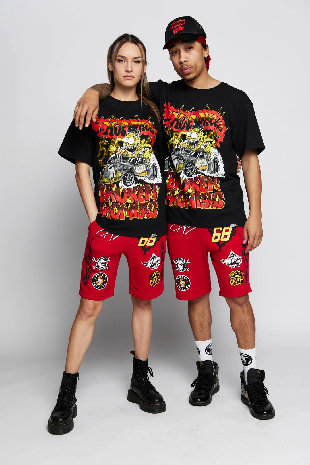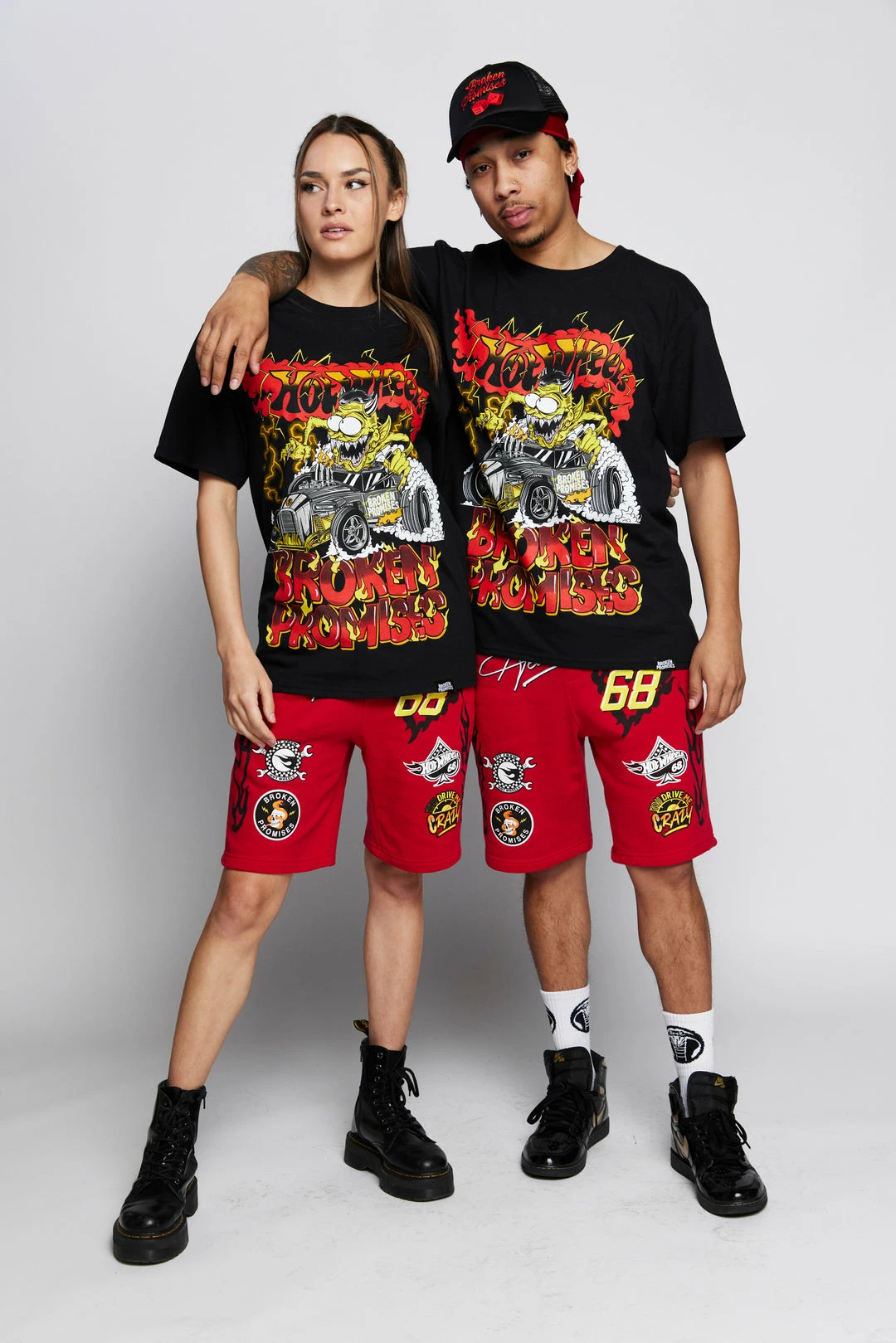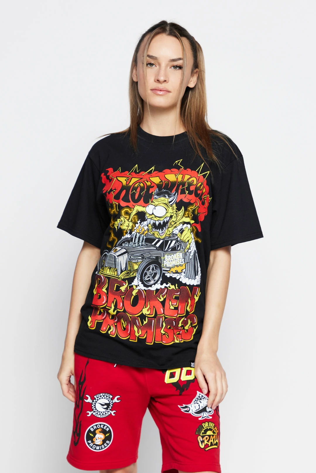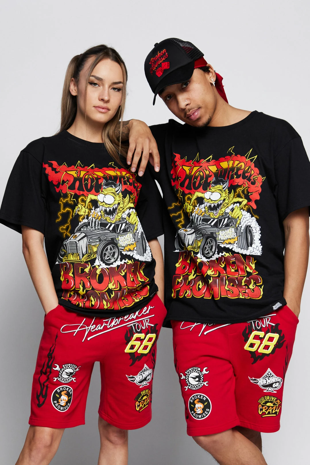 - Graphic features a demonic character on a Broken Promises Mod Rod inspired by the official Broken Promises x Hot Wheels die-cast.Â