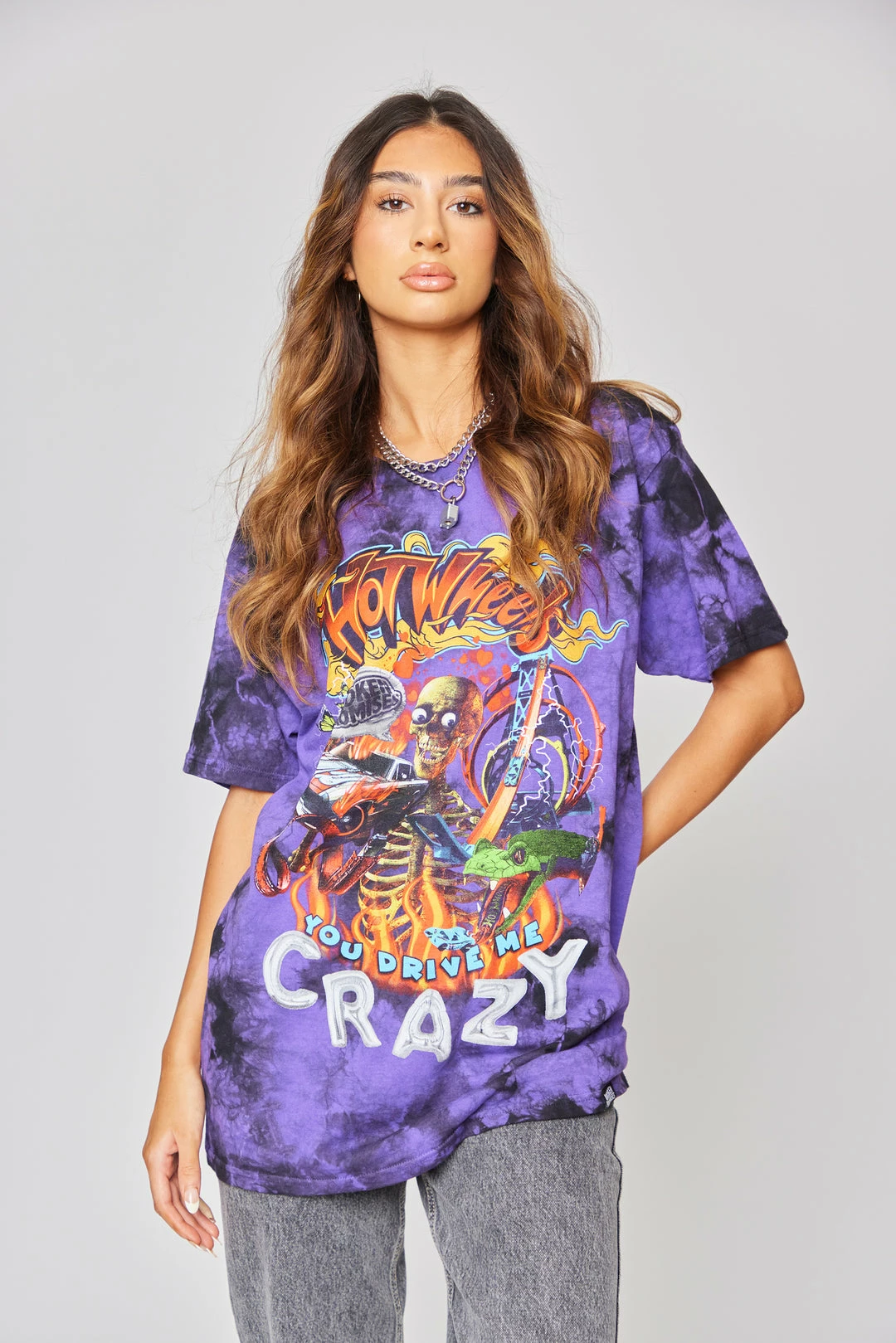 - Front features a skeleton playing with Hot Wheels track toys, a plastic snake and flaming Hot Wheels logo with the caption You Drive Me Crazy