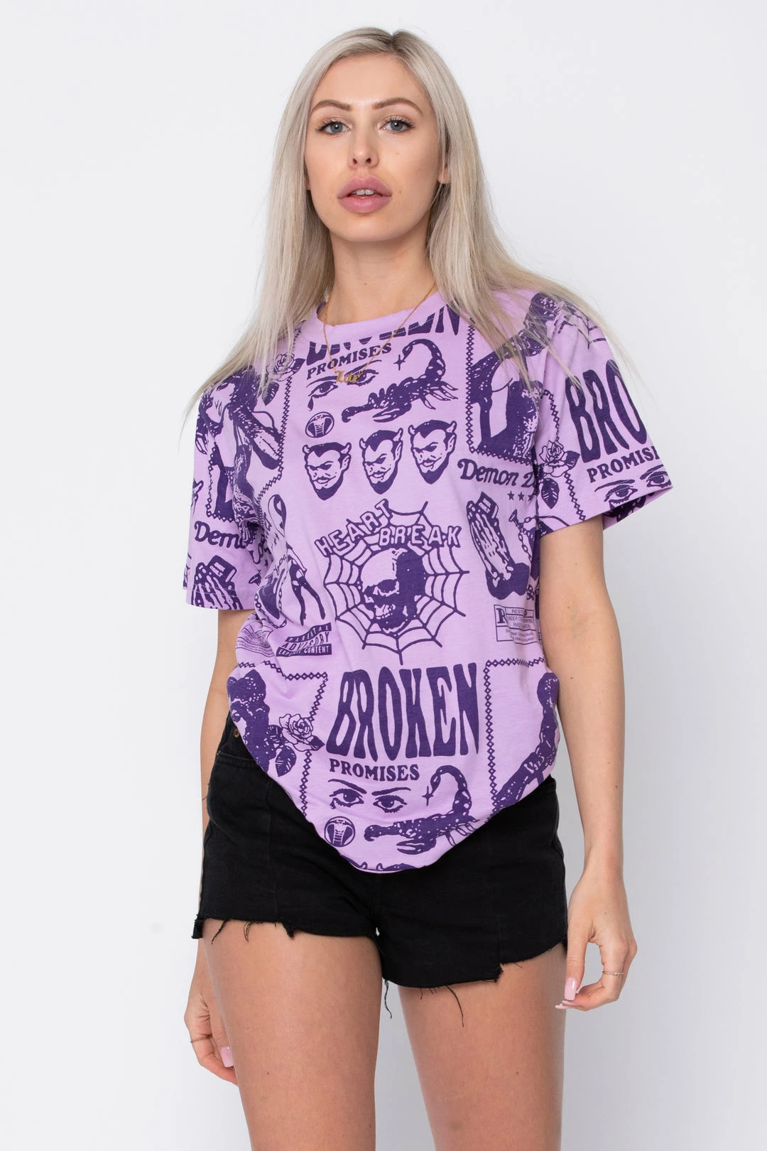BROKEN PROMISES Demon Lover AOP Tee Purple Shirts