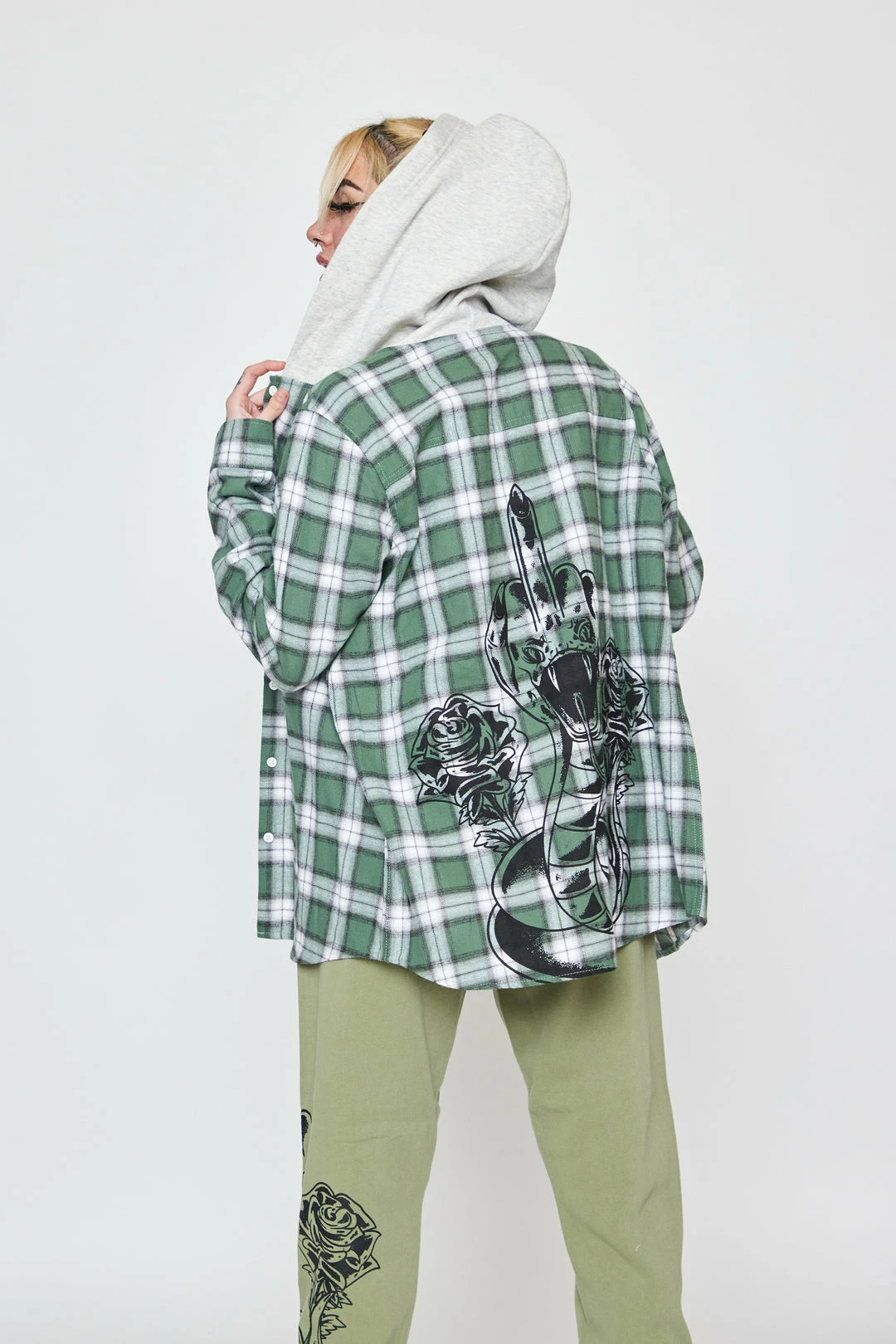- Green Plaid Hooded Flannel Shirt