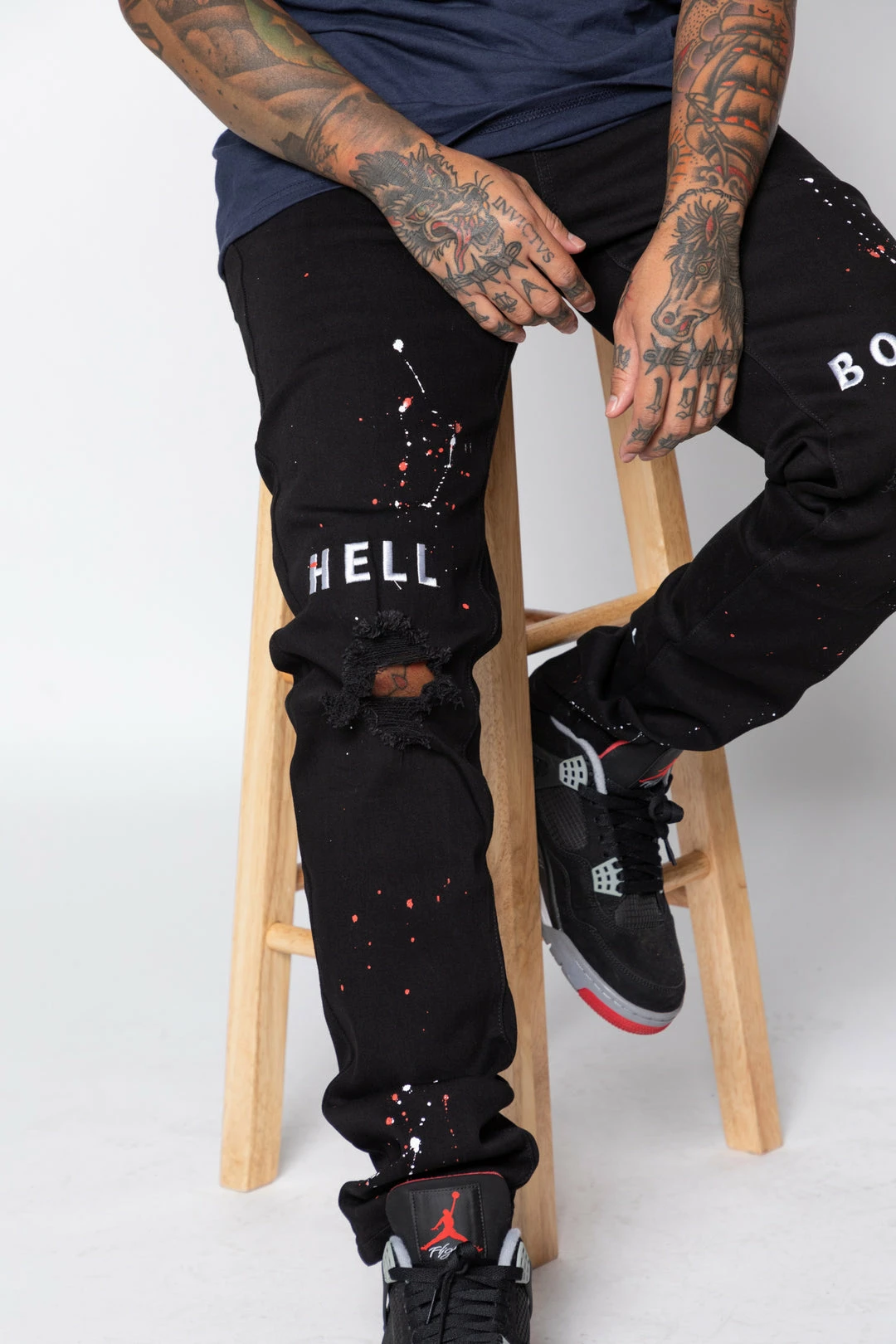 Be the first to review “CASH Hell Bound Spatter Denim Bottoms” Cancel reply