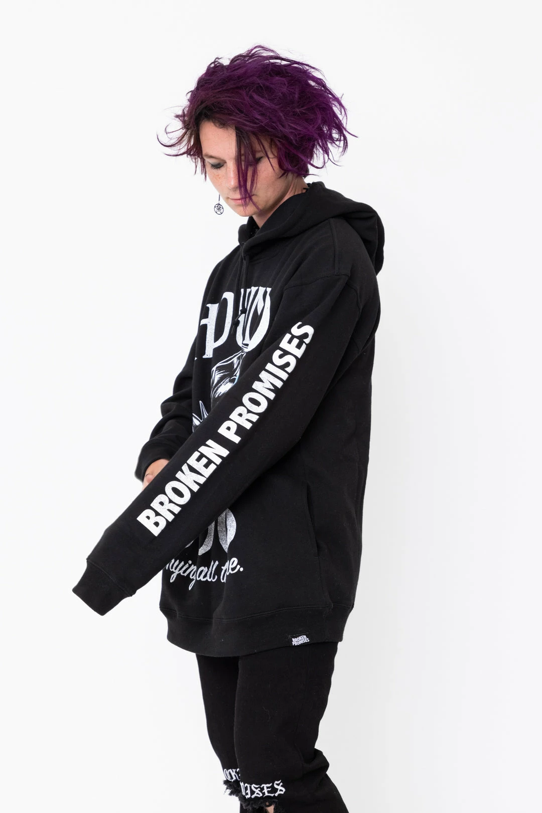 - Printed on our custom Broken Promises hidden pocket hoodie
